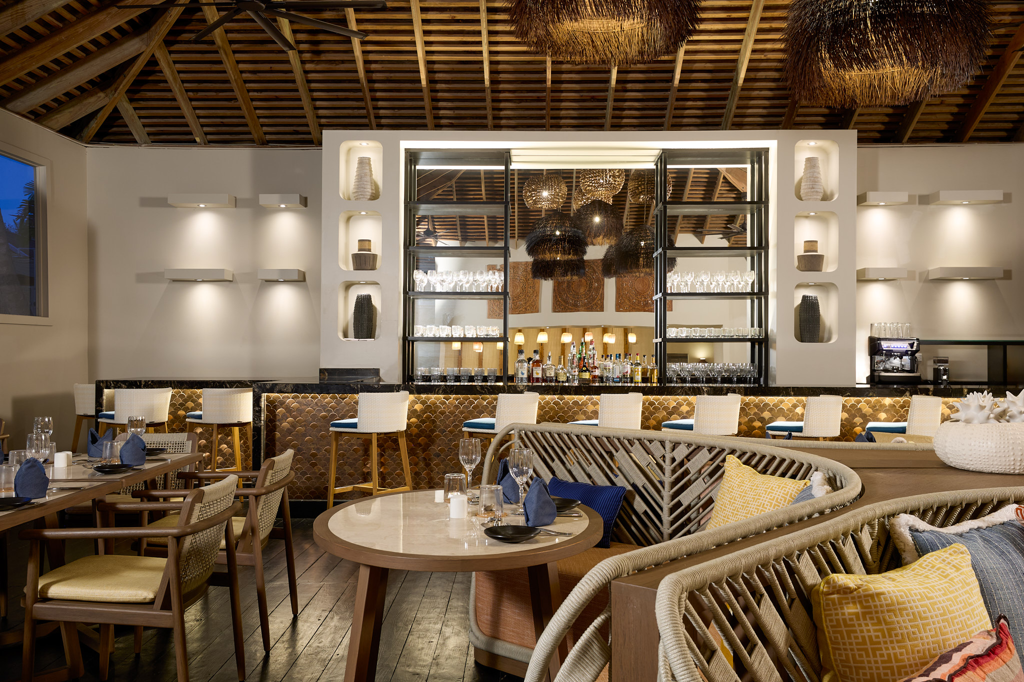 A great variety of all-inclusive, dining options in a selection of unique settings allows you to choose how you prefer to dine. From Asian to Mediterranean and snacks on the go, our two restaurants and bars and the new Kýma coffee bar satisfy your craving for inspired dining. Waves Hotel & Spa features exciting Asian fusion concept dining at Shiso including sashimi, sushi, noodle and rice bowls. Seascape offers buffet and a la carte Mediterranean-inspired cuisine in an open-air setting with dynamic ocean views. Kýma is a new coffee bar and deli great for quick bites and with al fresco dining and your favorite latte.