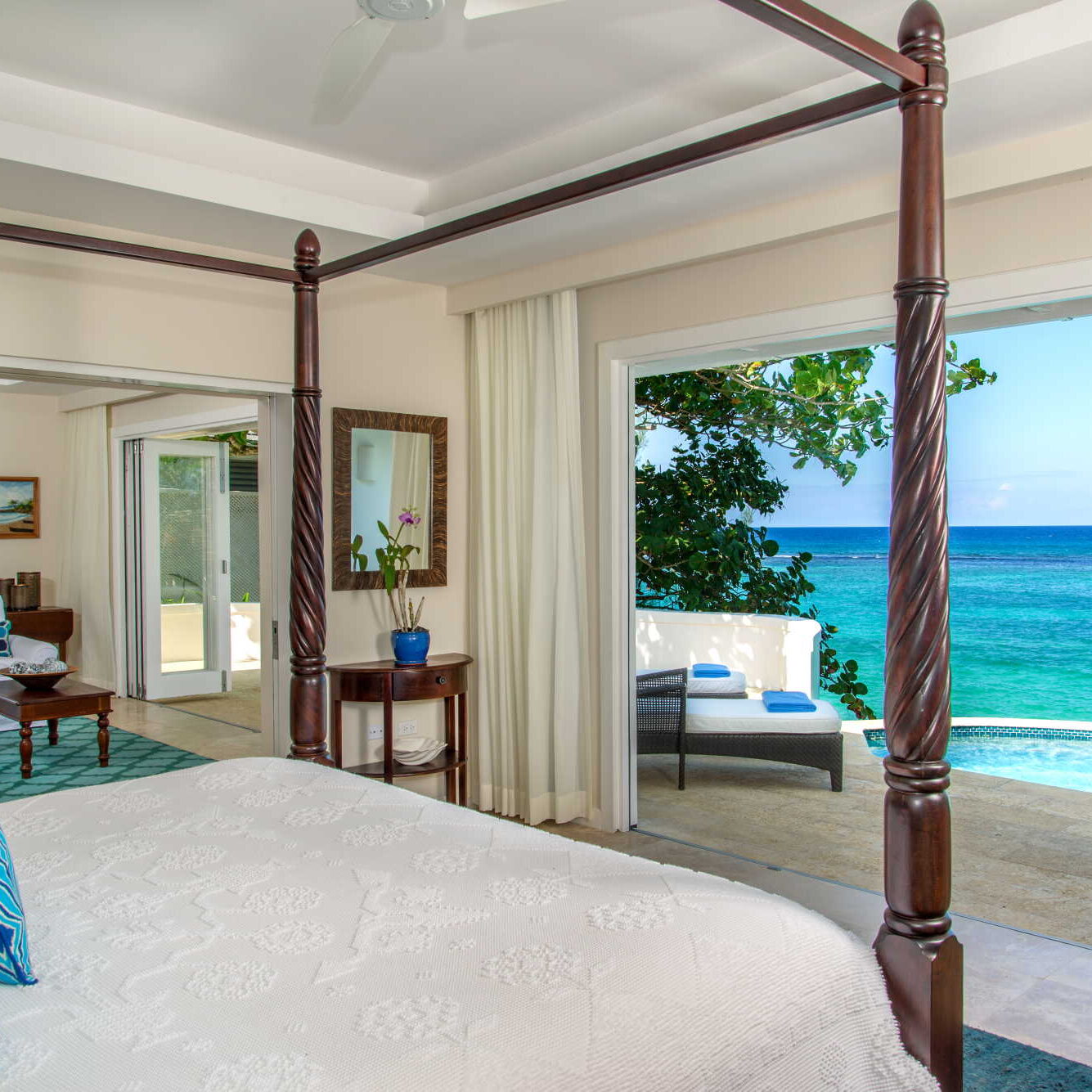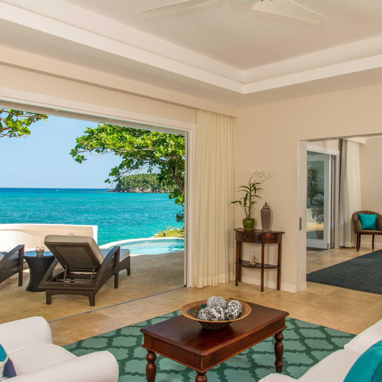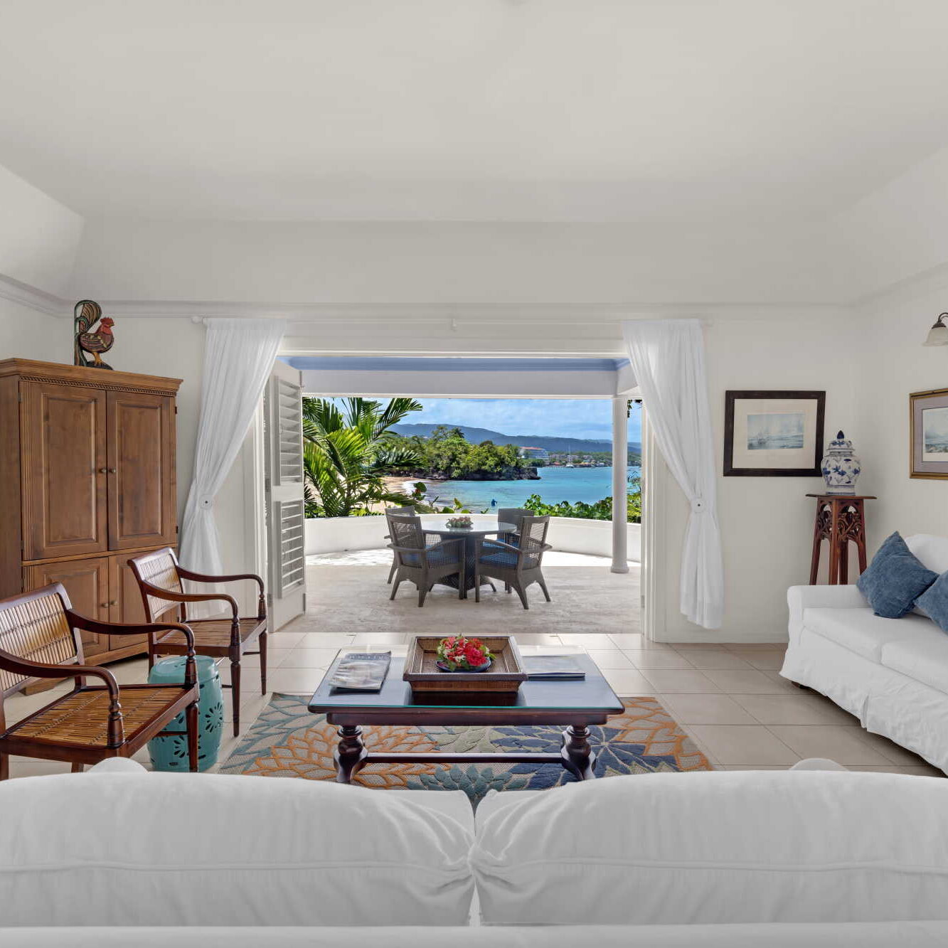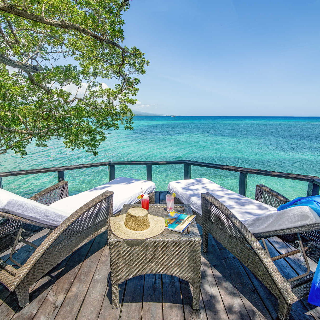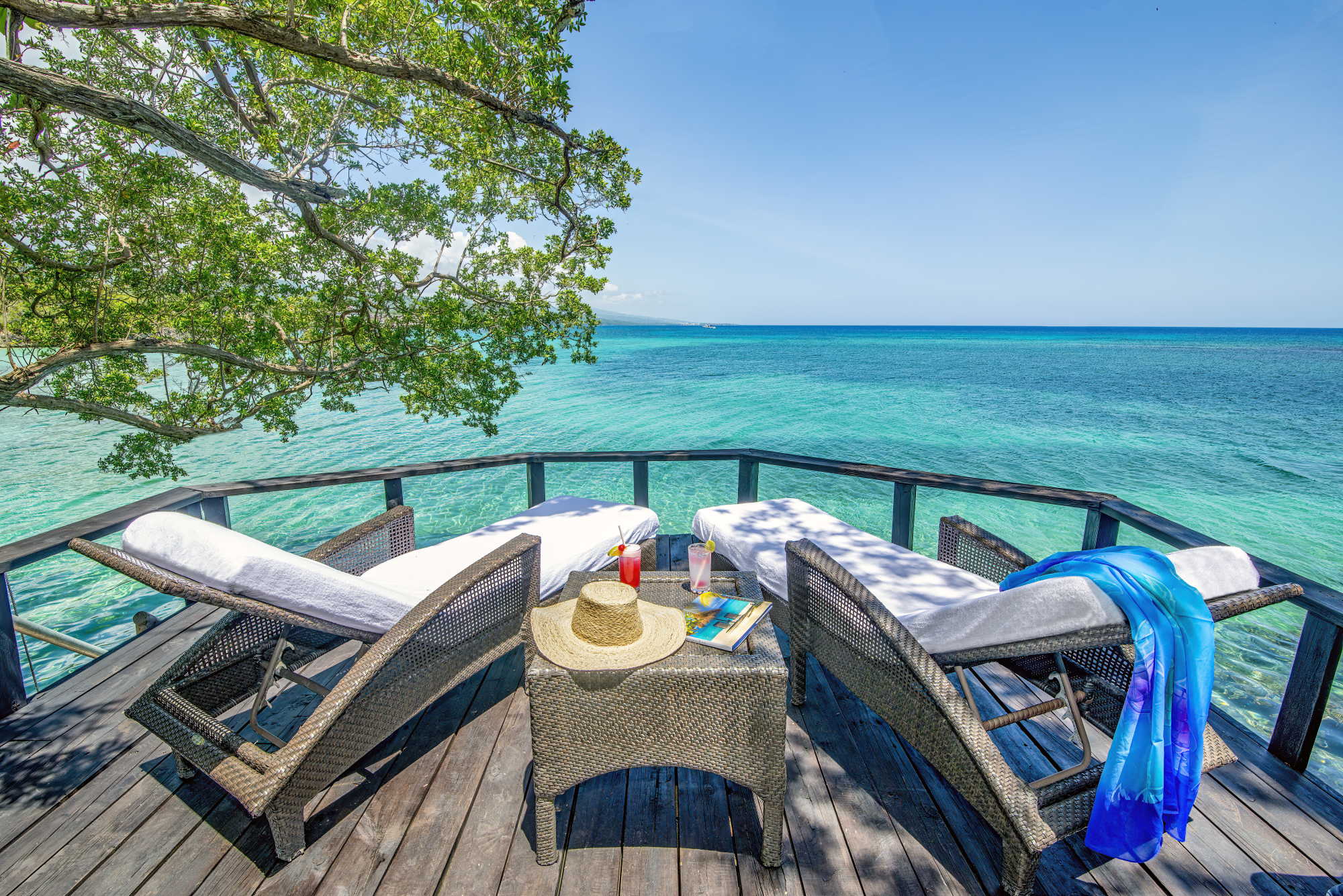 The atmosphere is one of complete tranquillity, allowing guests to truly switch off and unwind in peaceful surroundings with no distractions from the outside world. Stylishly designed throughout, the suites are a highlight, each featuring expansive balconies and verandas that feel like open air living spaces, complete with comfortable loungers and seating perfect for relaxing by the sea. With no televisions, clocks or radios, the focus remains on the calming ocean views, warm hospitality and unhurried pace of island life. Whether enjoying beachfront dining, spa treatments or simply soaking up the stillness, Jamaica Inn is ideal for a refined and restorative Jamaican escape.